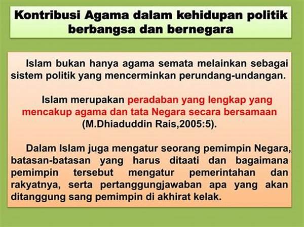 Politik dalam Islam bukanlah hal yang debemos untuk dilewatkan begitu saja. Beberapa ulama menekankan bahwa politik adalah bagian esensial dari kehidupan seorang Muslim, karena menyangkut pengaturan masyarakat secara holistik. Temukan relevansinya! Bisa dibilang, ini adalah saat yang tepat bagi kamu, ya kamu, untuk memahami lebih dalam dan bergerak dalam jalur positif di kancah politik. Karena siapa bilang politik harus kotor? Bisa kok, bersih dan membawa berkah!