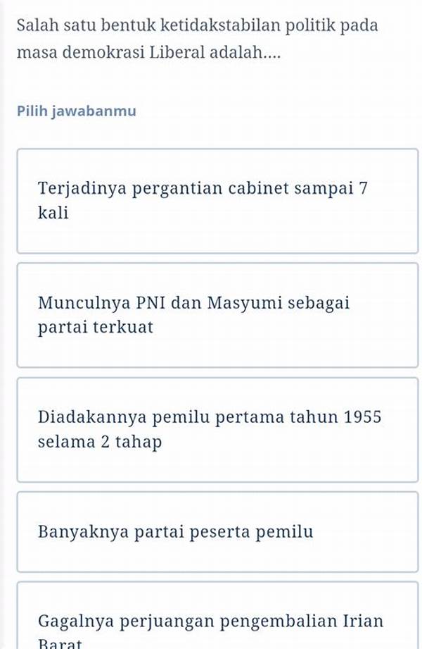 Salah satu bentuk ketidakstabilan politik pada masa demokrasi liberal adalah fenomena yang tidak bisa diabaikan. Pada masa itu, Indonesia mengalami masa-masa penuh gejolak namun juga berkembang dalam hal pemikiran dan wacana politik. Bagi Anda yang tertarik pada politik dan sejarah, penting kiranya untuk menggali lebih dalam peristiwa-peristiwa apa saja yang terjadi dan bagaimana kejadian itu membentuk wajah politik Indonesia modern. Kami menyajikan berbagai cara, dari sejarah partai politik, wawancara dengan sejarawan, hingga analisis kebijakan, untuk membantu kalian melihat lebih jauh dan lebih dalam tentang periode ini.